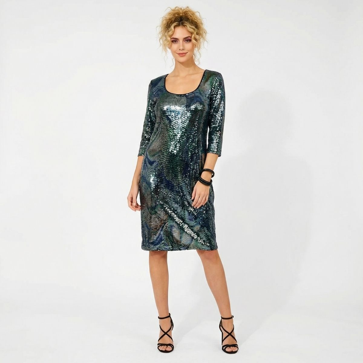 Φόρεμα Disco Girl, 92% nylon, 3%metal, 5%spandex. Ελαστικό midi φόρεμα, με 3/4 μανίκια και οβάλ λαιμόκοψη. Αποτελείται εξ ολοκλήρου από μεταλλικά mirror στοιχεία που προσφέρουν λάμψη. Φοριέται όλο τον χρόνο.