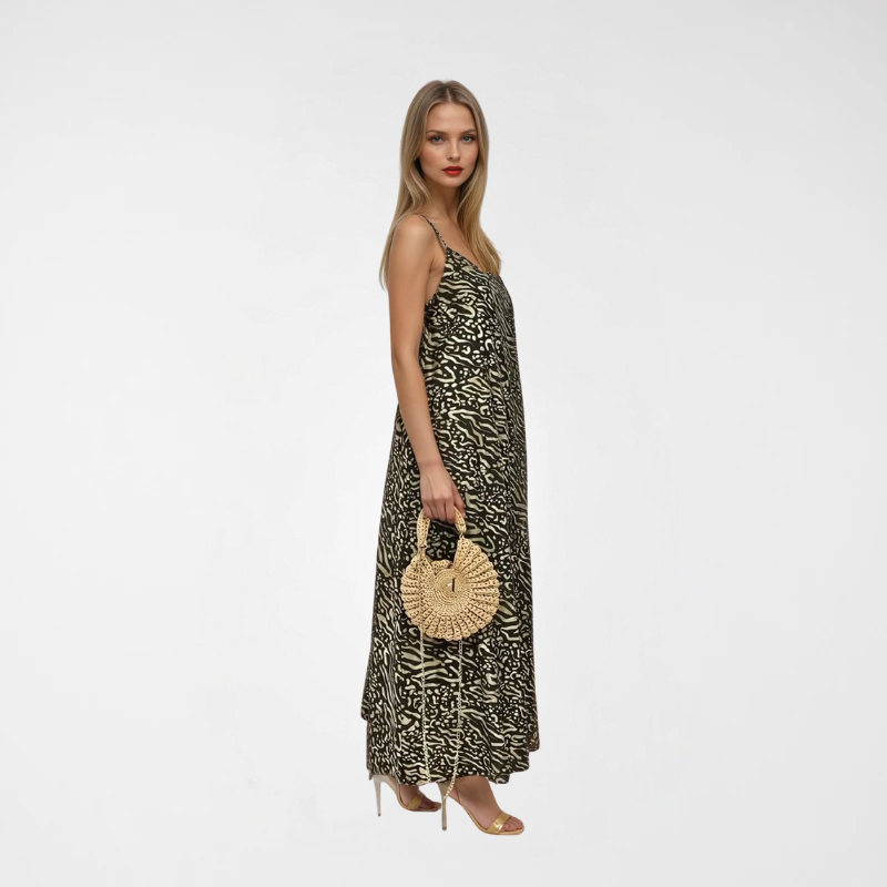 Φόρεμα Zambia maxi. Αέρινο maxi φόρεμα με όμορφο μοτίβο animal print. Ένα πολύ άνετο και παράλληλα θηλυκό κομμάτι που μπορείτε να φοράτε όλη μέρα και νύχτα, αυτό το καλοκαίρι!