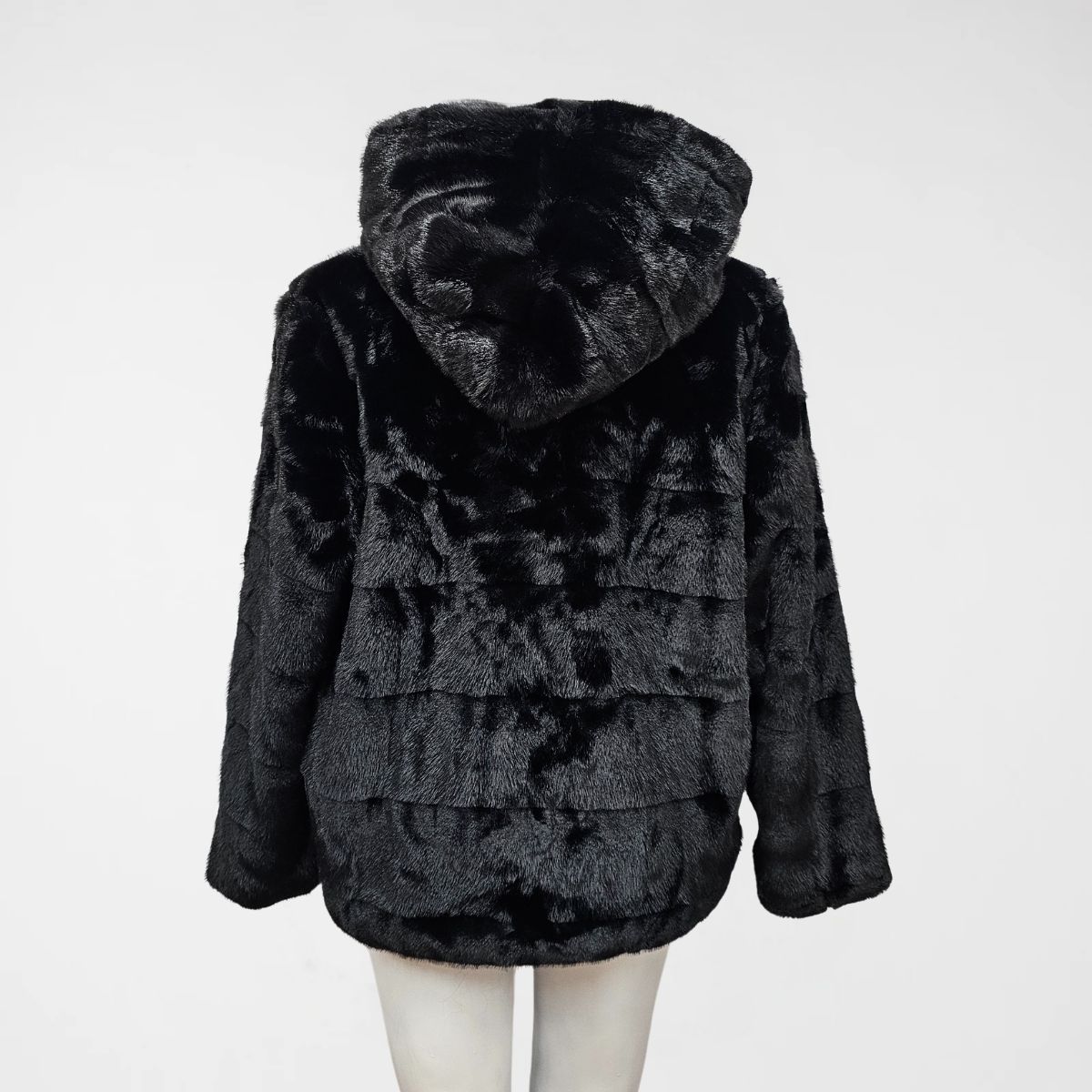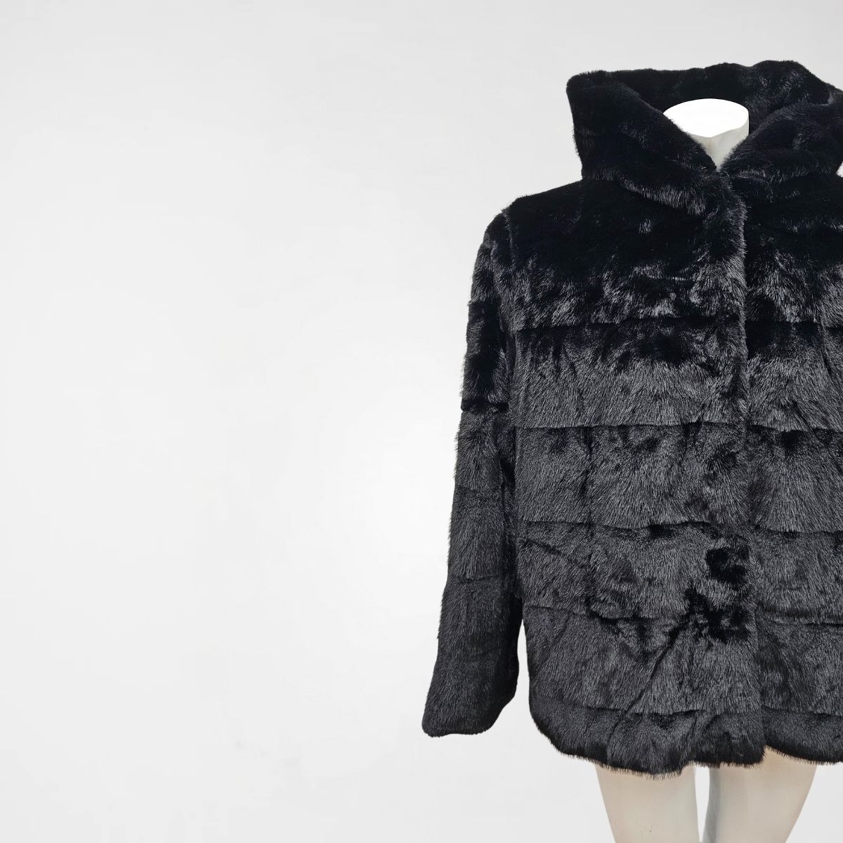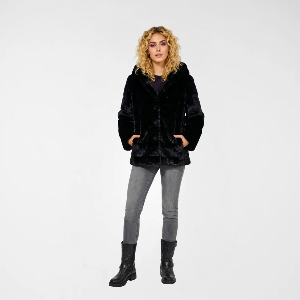 Γούνινο Ημίπαλτο Bon Noir, 100%pol. eco fur. Κοντό πανωφόρι από οικολογική γούνα, σε ίσια γραμμή. Εσωτερική επένδυση με φόδρα. Διαθέτει πλούσια κουκούλα και πλαϊνές τσέπες. Κλείνει με χρυσά εσωτερικά κλιπς. Τα μανίκια του είναι σε ίσια γραμμή. Βγαίνει σε χρώμα μαύρο και καφέ.