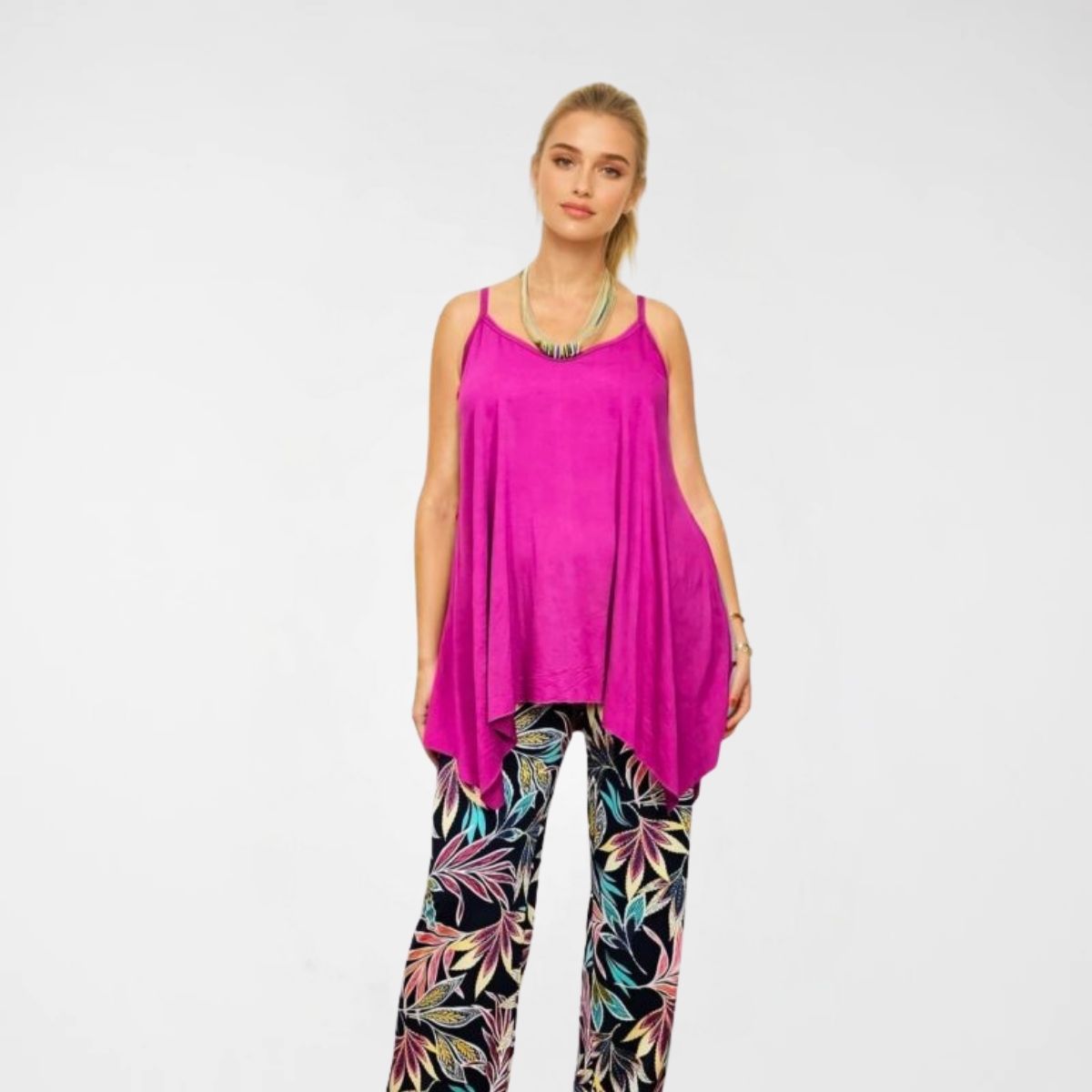 Μπλούζα Alpha Top (cotton). Τιραντέ μπλούζα σε Α γραμμή. Το σχήμα της δημιουργεί μύτες αριστερά και δεξιά, καλύπτοντας την περιφέρεια. Σε 3 χρώματα, φούξια, γαλάζιο (πετρόλ) και μαύρο.
