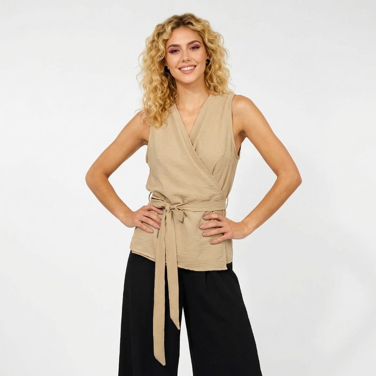 Μπλούζα City, αμάνικη μπλούζα με σταυρωτό δέσιμο, δένει γύρω από την μέση με ζώνη, κολακεύοντας την σιλουέτα. Δροσερή κι άνετη γραμμή, κατάλληλη για casual ντύσιμο με στυλ.