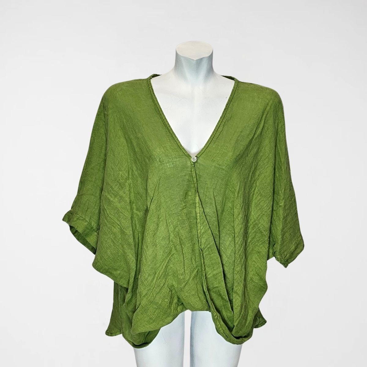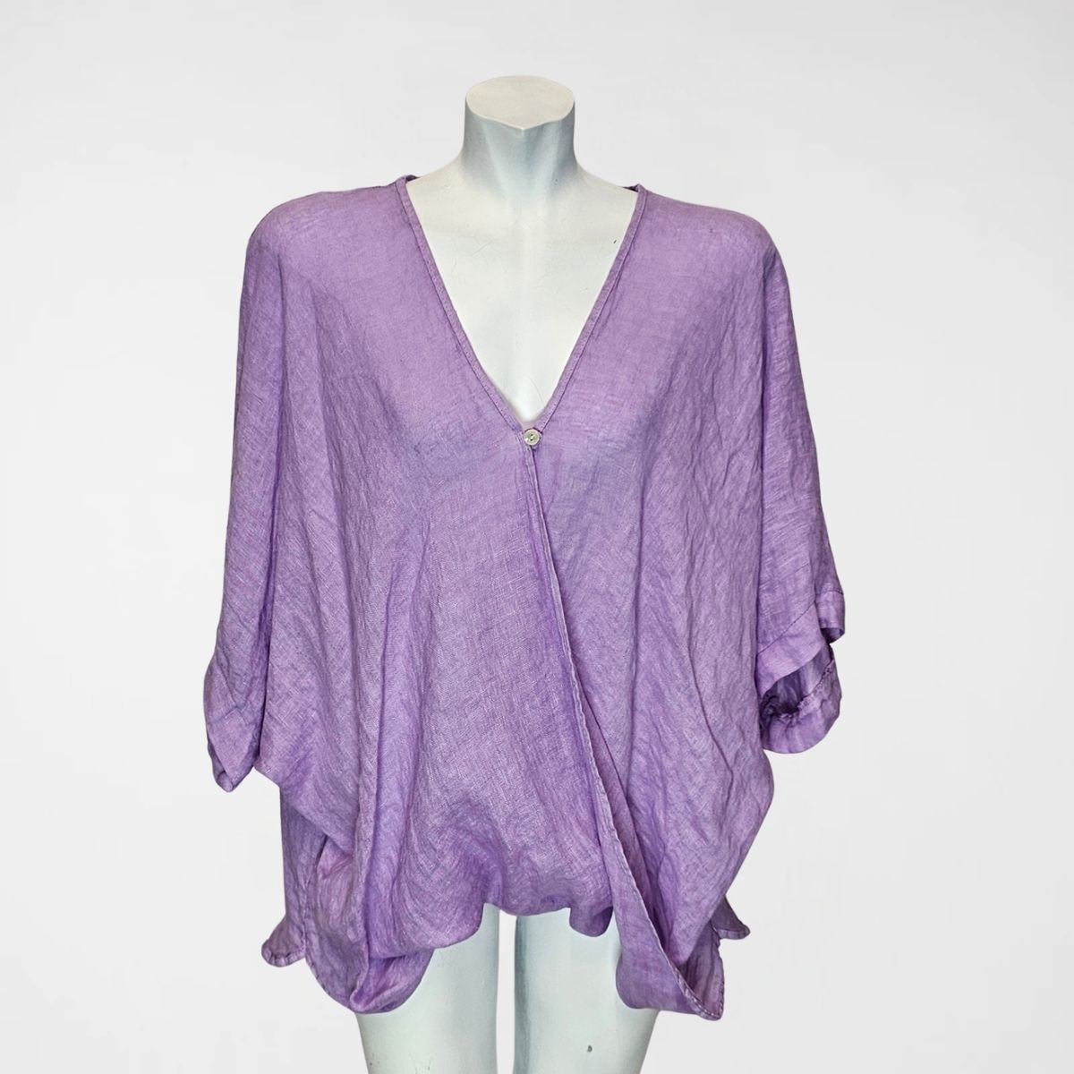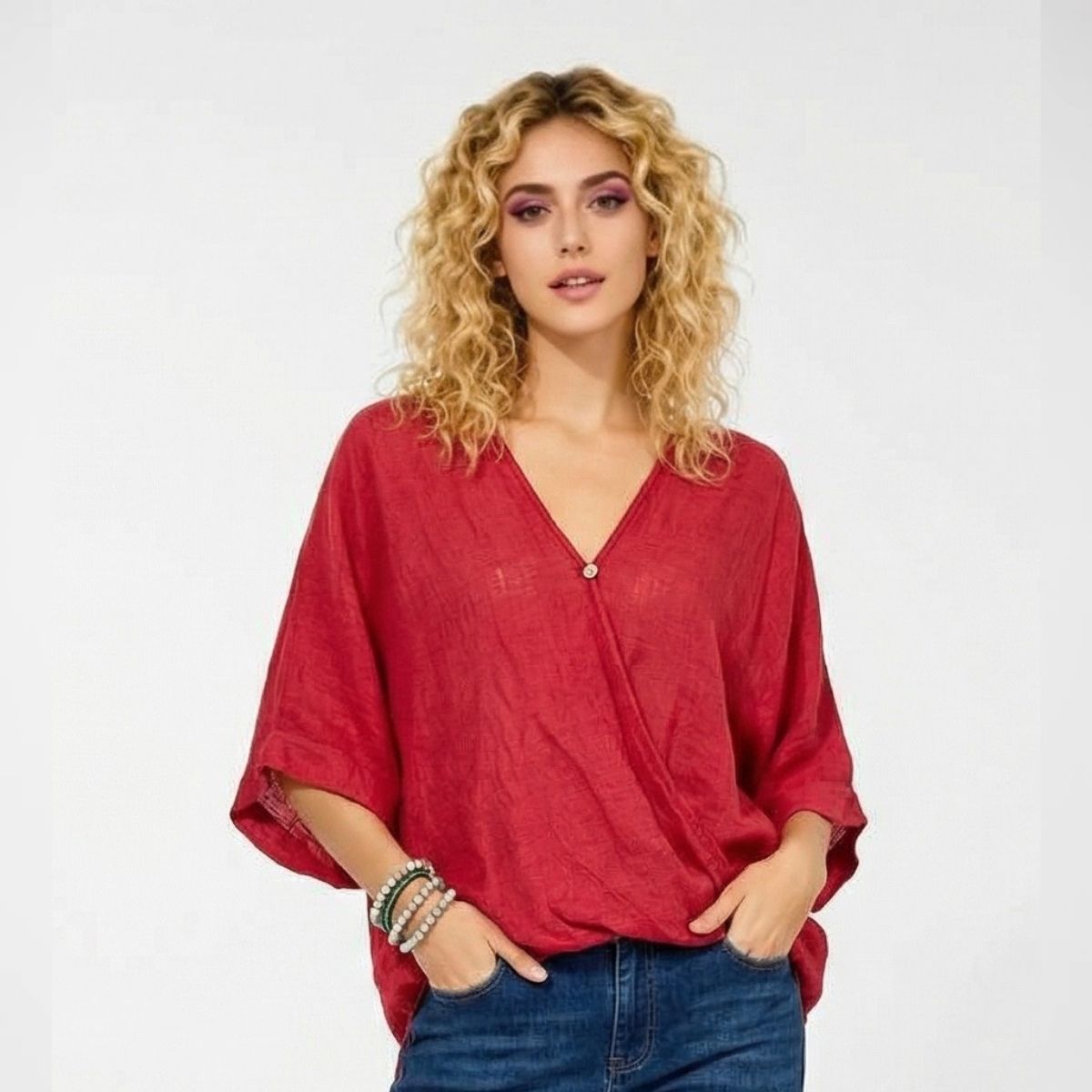 Μπλούζα Lyne, 100%lino. Αέρινη, λινή, boho μπλούζα σε Α γραμμή, με κοντά μανίκια 3/4. Διαθέτει άνετη V λαιμόκοψη με 1 κουμπί. Το πατρόν της είναι κρουαζέ. Βγαίνει σε πολλά χρώματα.