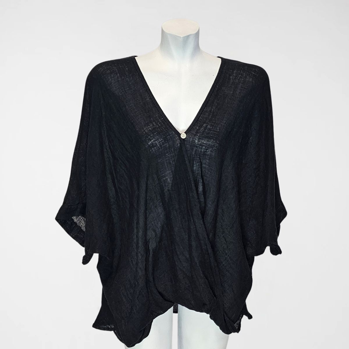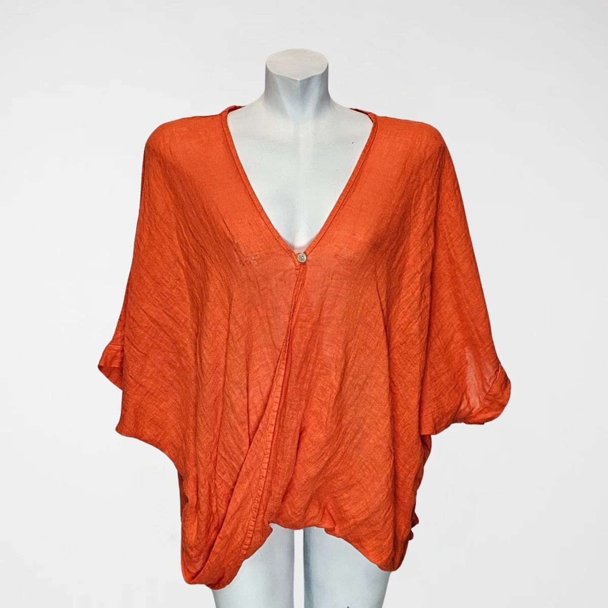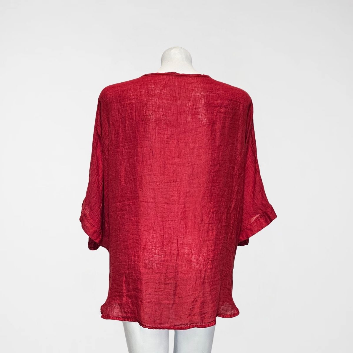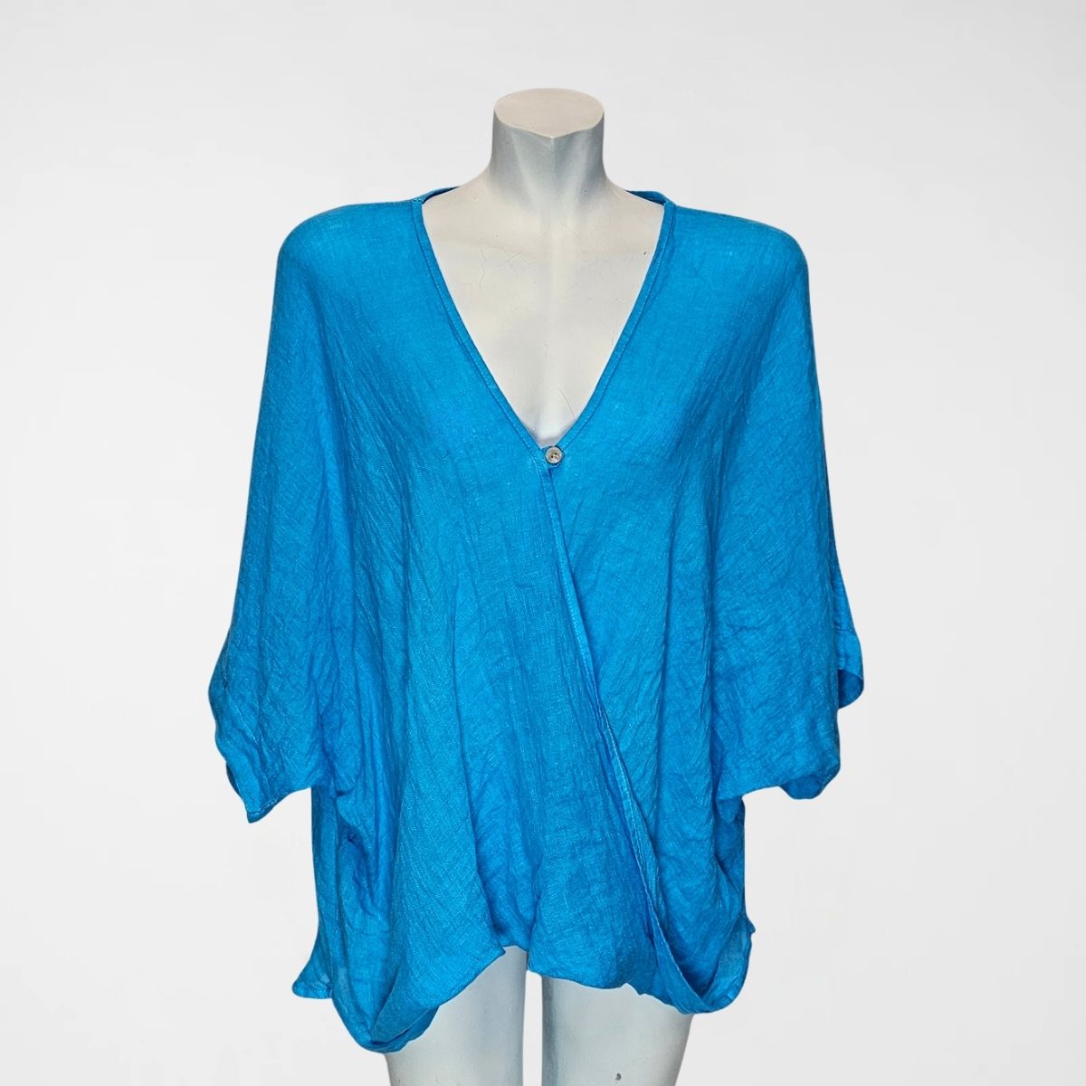 Μπλούζα Lyne, 100%lino. Αέρινη, λινή, boho μπλούζα σε Α γραμμή, με κοντά μανίκια 3/4. Διαθέτει άνετη V λαιμόκοψη με 1 κουμπί. Το πατρόν της είναι κρουαζέ. Βγαίνει σε πολλά χρώματα.