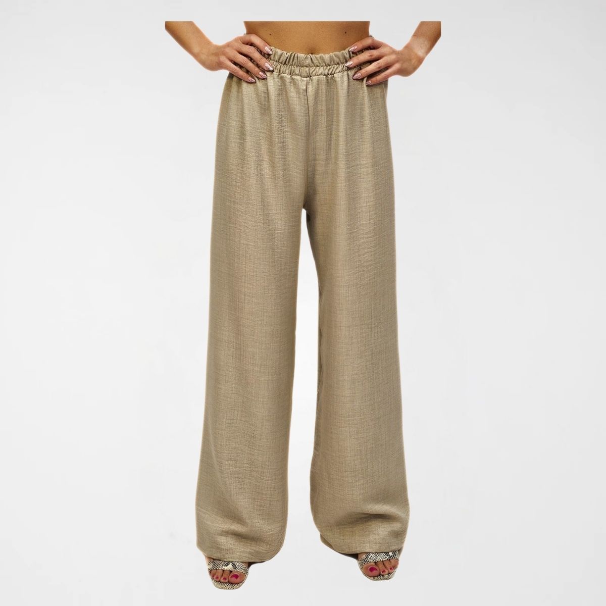 Παντελόνα Wide, 65% rayon 35% λινό. Φαρδιά ίσια γραμμή, με λάστιχο στη μέση. Ελαφρύ ύφασμα.