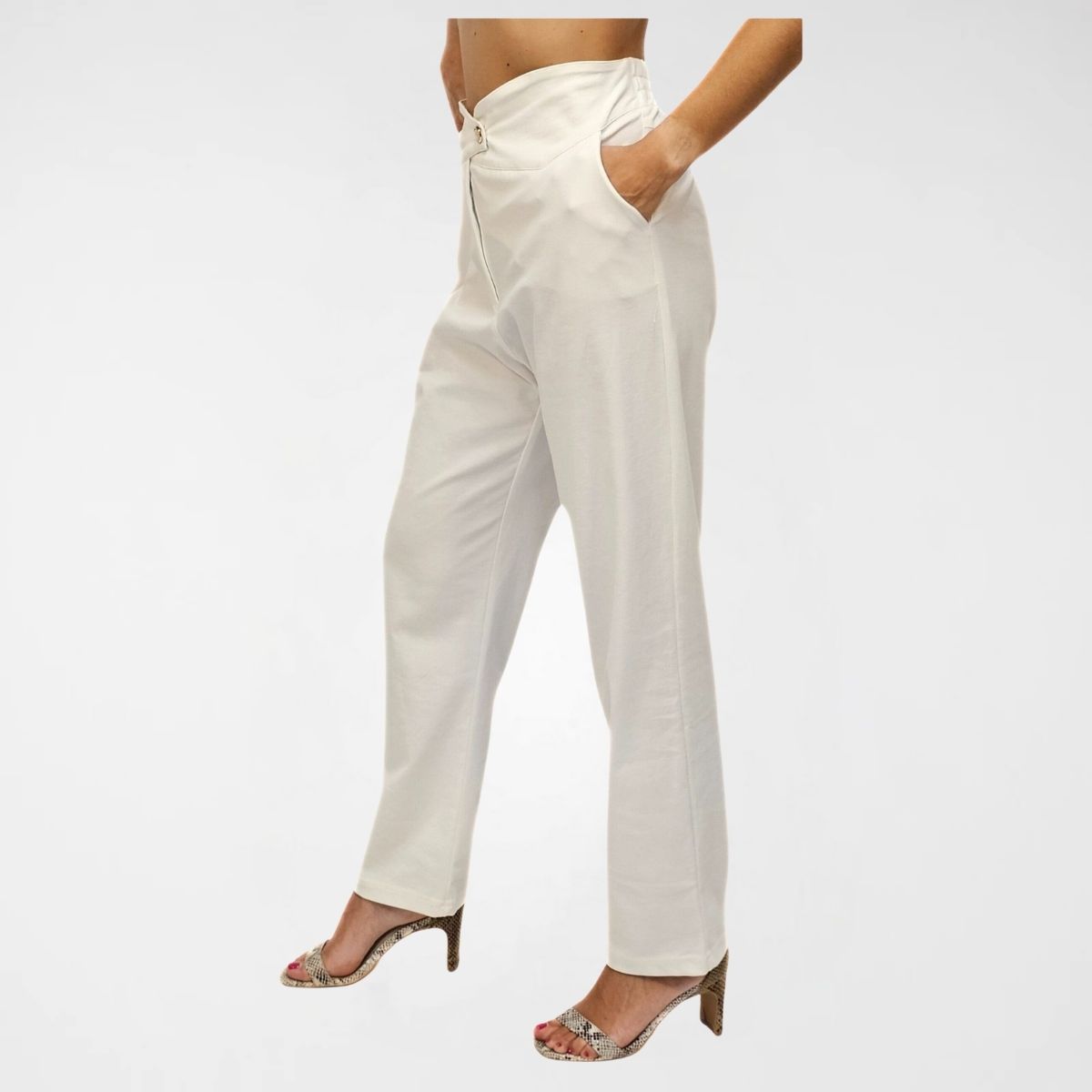 Παντελόνι, 85% pes 15%spand. Ελαστικό με ιδιαίτερη μπάσκα και λάστιχο πίσω στη μέση για πολύ καλή εφαρμογή, περλέ κουμπί, φερμουάρ και τσέπες. Ιδανικό για επαγγελματικό και casual chic outfit.