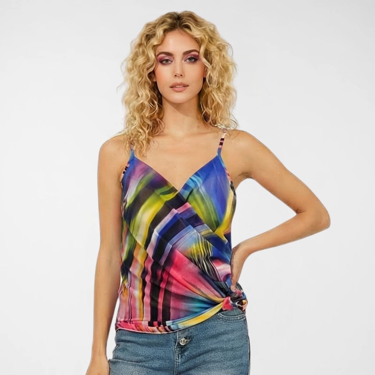Top Euphoria Stripes. 100%pes. Διαθέτει διακριτικές προσαρμόσιμες τιράντες, ντραπέ που κολακεύει το μπούστο και σούρες ραμμένες στα πλαϊνά.